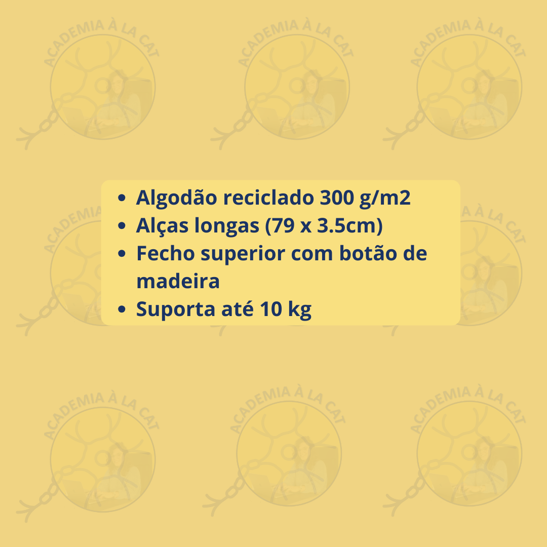 A Tote Bag "Academia à la Cat" chegou para te acompanhar em todos os momentos de aprendizagem. Perfeita para transportar cadernos, livros, estojo e tudo o que precisas para estudar com leveza e organização. Ela aguenta até 10kg!